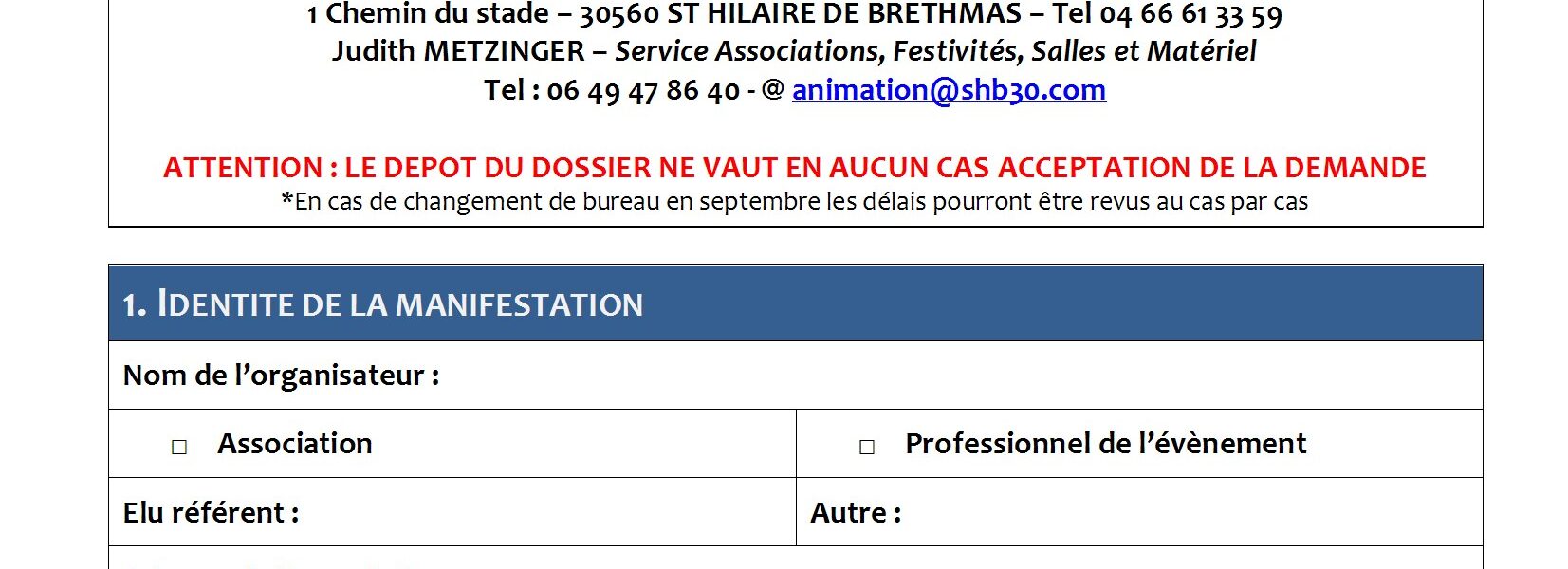 Dossier unique de demande d’organisation d’une manifestation